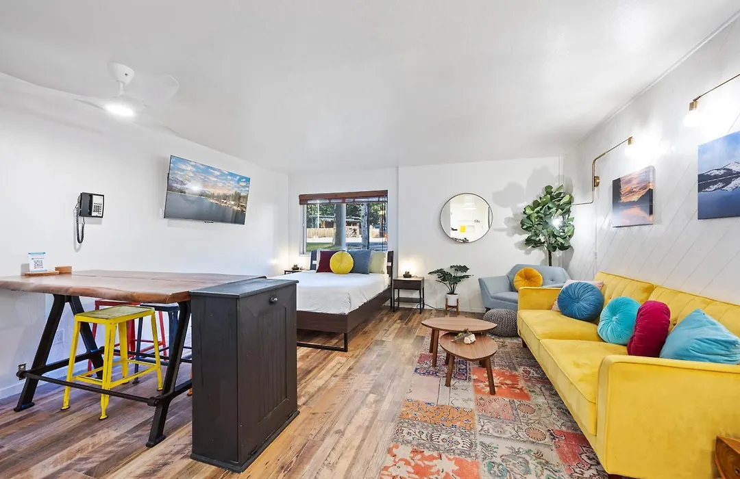 Striking Queen Deluxe Studio W/Kitchenette #114 At Donner Lake Village is located 500 metres from West End Beach and offers guests to enjoy snow skiing, hiking, and fisheries. Featuring a sauna, the 1-bedroom villa is 2.5 km from Donner Summit Bridge.